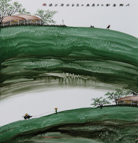 釉下综合装饰《傣乡秋韵》瓷瓶