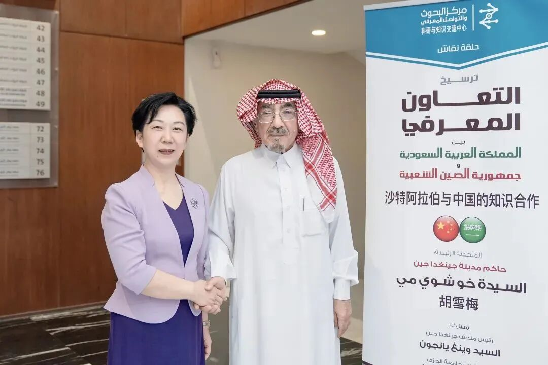 胡雪梅代表景德镇市政府,对此次活动的举办表示热烈祝贺,向出席本次活动的各位嘉宾和朋友致以诚挚问候。胡雪梅指出,辉煌灿烂的阿拉伯文明对世界文明作出了突出贡献,创造了辉煌的历史成就,对人类精神生活产生了重要影响。中阿友谊源远流长,历久弥坚,而景德镇瓷器恰恰是中阿友好精神的历史见证,享誉世界的景德镇青花瓷就是800多年前中阿文化交融交汇的成果。她表示,当前,景德镇始终秉承国际化思维,全力推动文明交流互鉴,努力打造对外文化交流新平台。以陶瓷文化交流为抓手,深入挖掘中沙文化内涵,延续中沙文化的历史对话和当代表达,契合沙特“2030愿景”文化多元化发展战略,符合景德镇国家陶瓷文化传承创新试验区建设的战略定位,双方合作前景广阔、正当其时。胡雪梅还用英文为大家详细介绍了景德镇的文化底蕴和独特魅力,并诚挚邀请沙特各方朋友莅临景德镇考察交流,沉浸式感受景德镇厚重的陶瓷文化,共同谱写交流合作的崭新篇章。