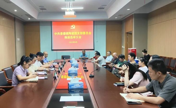 根据《中国共产党章程》、《中国共产党基层组织选举工作条例》等相关规定,经景德镇市文旅局机关党委批复。2023年8月25日上午,中共景德镇陶瓷馆支部委员会换届选举大会在景德镇中国陶瓷博物馆二号会议室召开,会议选举并产生了新一届支部委员会。全体党员参加会议。会议由馆党支部副书记、工会主席程丽主持。